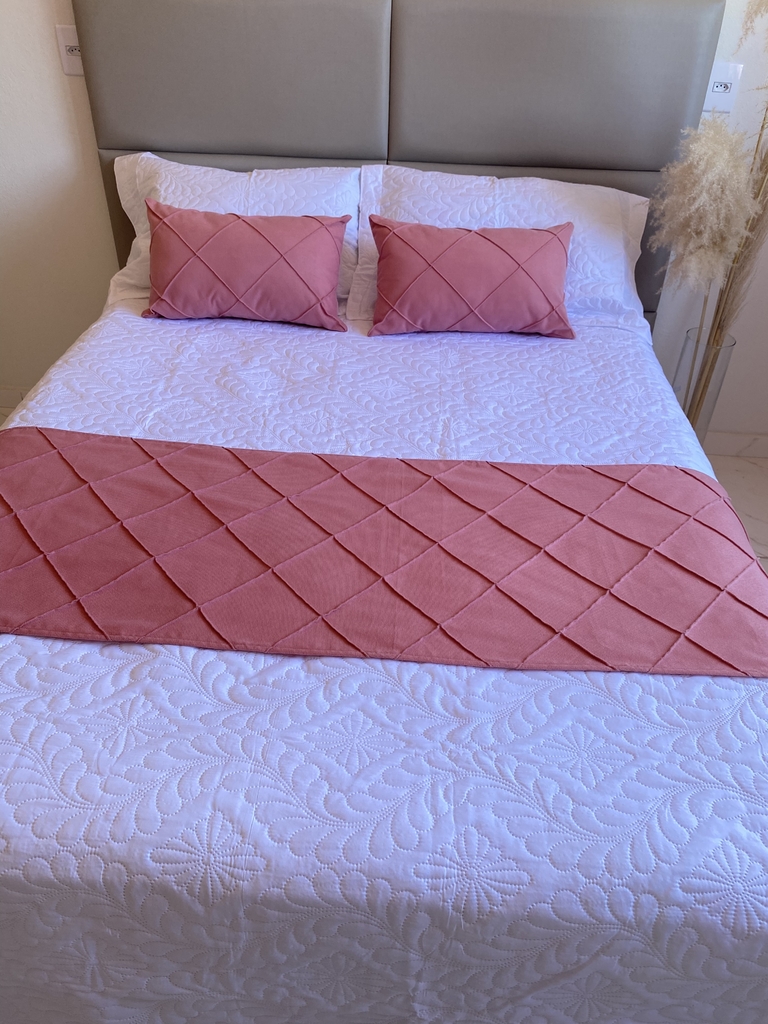 Combo Roupa de Cama Decorada Rosa - Casal